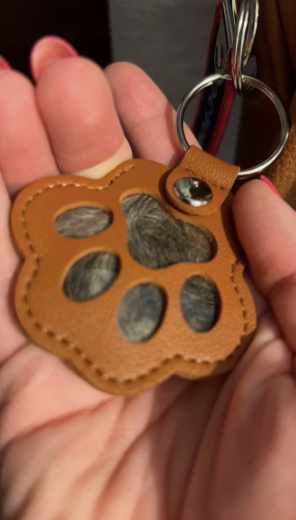 Păstrează aproape amintirea prietenului tău blănos cu un breloc în formă de lăbuță, creat special pentru a adăposti o mică șuviță din blănița lui.